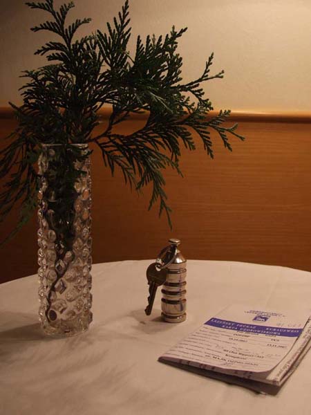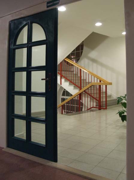 nahoru. Po snídani dalších 45 schodů, jenže klíč je pro změnu dole v jídelně.