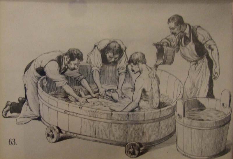 Pobolívají mě záda, tak si říkám proč nevyužít dobrodiní vany. Taková vana plná horké vody dělá divy. Jak jsem tak u vany stál, nezdál se mi už nápad tak výtečný. Je to vana, to jo, ale sedací. Čili miniaturní. No nic, na prohřátí kostry by měla stačit, spokojím se i s málem vody. Nasoukat se do vany nebyl zas tak velký problém. Ale co dál? Lehnout si? Zkusit se to může. S nohama nahoře jsem si připadal jako husa v pekáči dimenzovaném na kuře. Jenže teď už nezbylo ve vaně prostoru pro vodu. Pustil jsem alespoň sprchu. Podlévání ještě zintenzivnělo pocit pečící se husy. Za chvíli mě byla zima a tak jsem zkusil vanu opustit. Většina vody se už dávno vylila na podlahu, ale já se zřejmě nějak připekl. Teď mě od vytírání podlahy bolí záda. Že bych si je nahřál ve vaně?