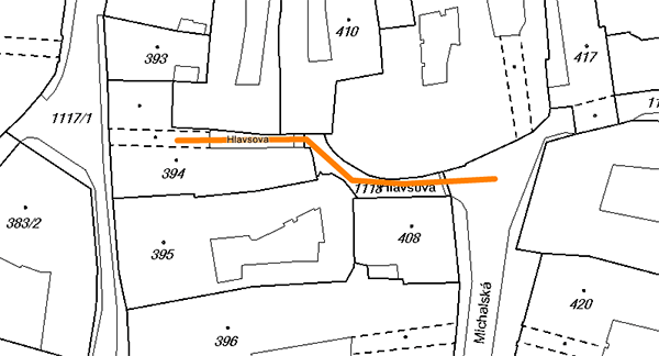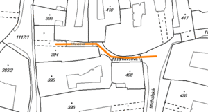 Ulička na mapě není, ale je označena jako stavba.