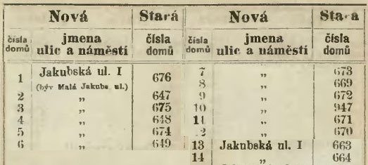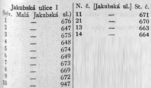 | před 1869 | | Malá Jakubská | | Adresář Prahy, 1869 |