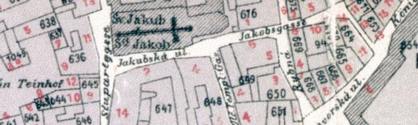 Jakobsgasse zahrnuje nejen současnou Jakubskou, ale i dnešní Malou Štupartskou
