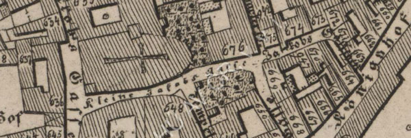 | 1811 | | Kleine Jakobsgasse / Malá Jakubská (západní část dnešní Jakubské) | | Jüttnerův plán Prahy, 1811-1815 |