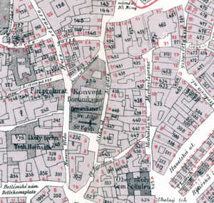 do 1870  Svatojilské náměstí (rozšíření u kostela) M. Lašťovka, V. Ledvinka a kol.: Pražský uličník, 1998