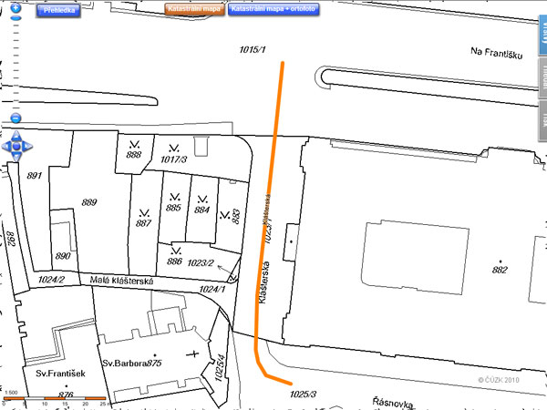 Klášterská na plánech Prahy