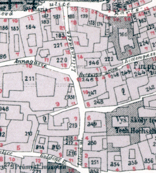 1811  Liliengasse (Liliová) Jüttnerův plán Prahy, 1811-1815