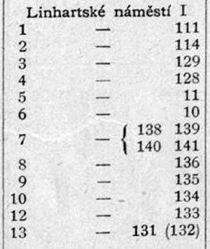| 1869 | | Linhartské náměstí | | Adresář Prahy, 1869 |