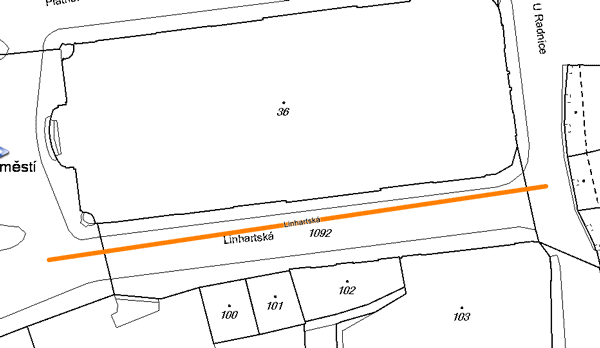 | dnes | | Linhartská | | Katastr nemovitostí, 2013 |