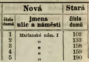 V roce 1802 došlo v tehdejší Praze k přečíslování domů. Od té doby se často užívalo označení staré číslo a nové číslo. Aby to ale nebylo tak jednoduché, v roce 1869 byly domy znova očíslovány a opět se začalo používat označení staré číslo a nové číslo, ale občas se objevoval i pojem nejstarší číslo.