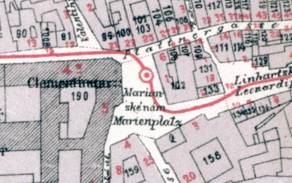 1891  Marianské náměstí / Marienplatz Hurtigův plán Prahy, 1891