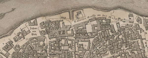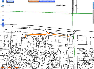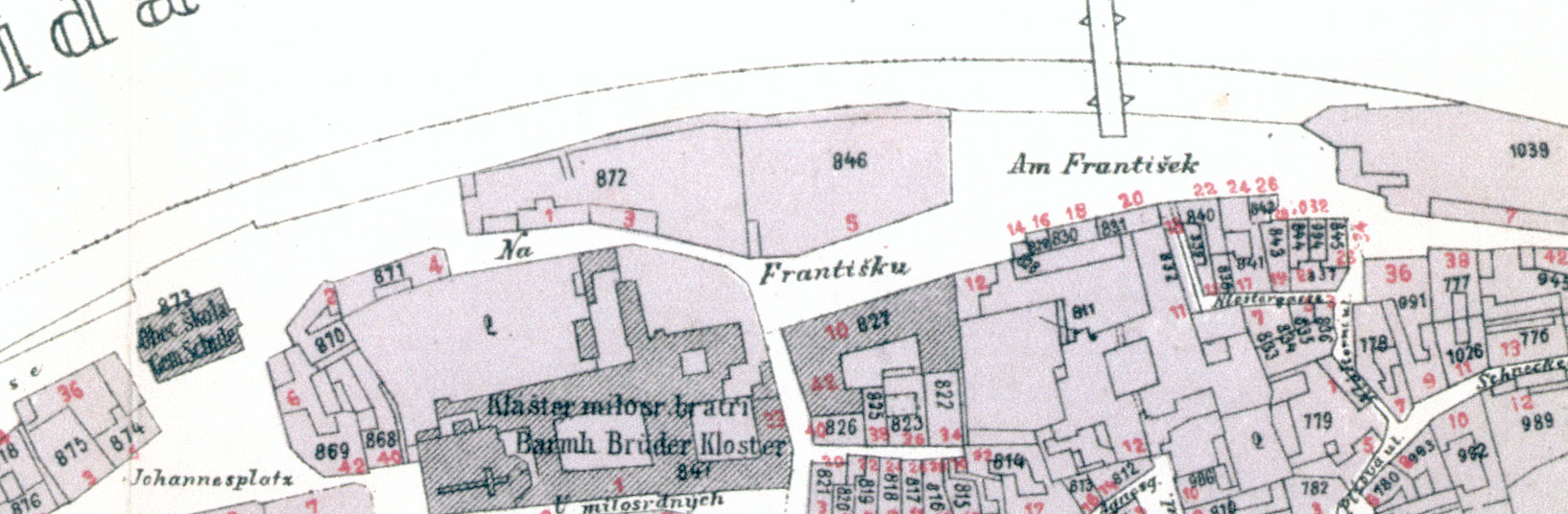 Katastru nemovitostí z roku 2013 sahá jak ulice Na Františku, tak Dvořákova nábřeží