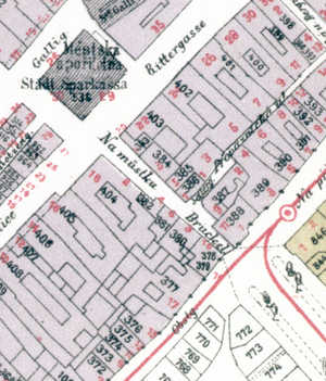 Při číslování roce 1869 byly domy očíslovány v rámci jedné ulice.