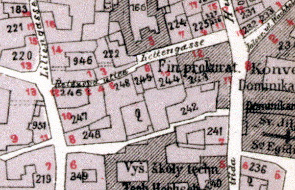 Při číslování roce 1869 byly domy očíslovány v rámci jedné ulice.