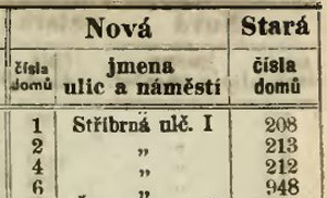 V roce 1802 došlo v tehdejší Praze k přečíslování domů. Od té doby se často užívalo označení staré číslo a nové číslo. Aby to ale nebylo tak jednoduché, v roce 1869 byly domy znova očíslovány a opět se začalo používat označení staré číslo a nové číslo, ale občas se objevoval i pojem nejstarší číslo.