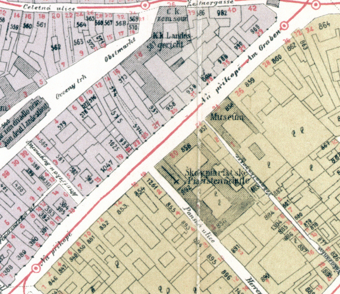 | 1891 | | Na příkopě / Am Graben | | Hurtigův plán Prahy, 1891 |