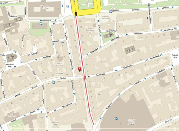 Lichá čísla na levé straně ulice od náměstí Republiky leží na území Starého Města,