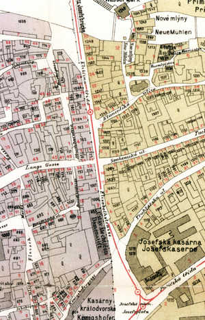 sudá čísla na pravé straně jsou na území Nového Města.