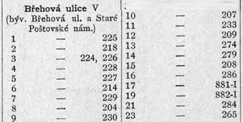 Břehová v adresářích Prahy