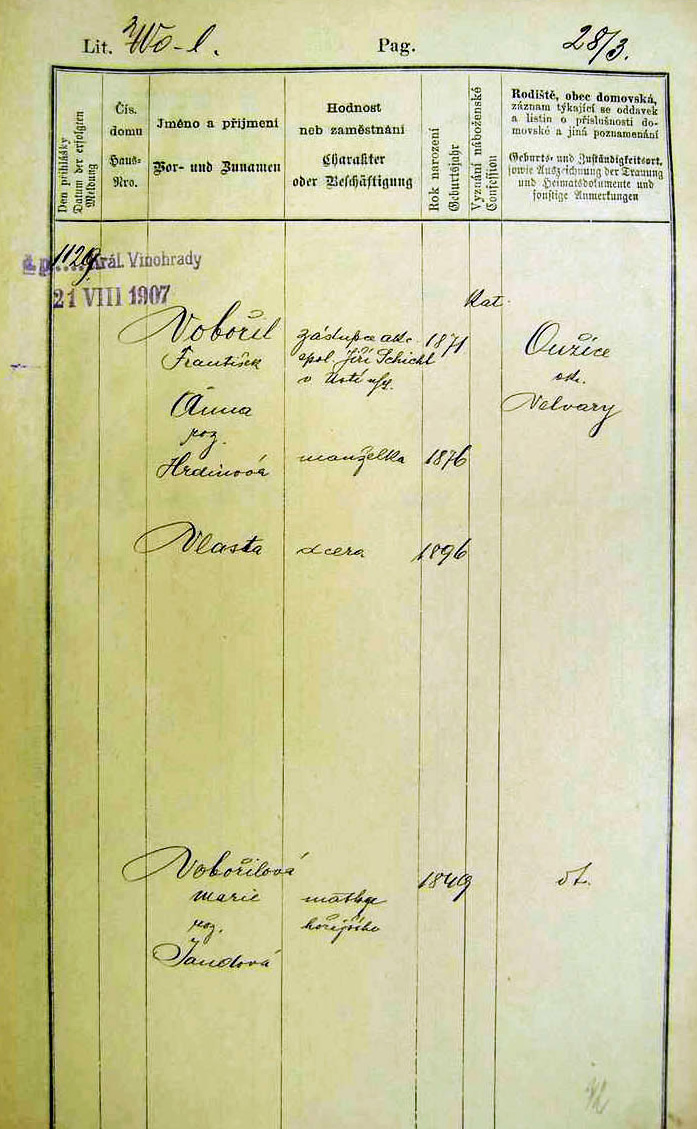 21 VIII 1907 1129 Král. Vinohrady [Mánesova 44] |