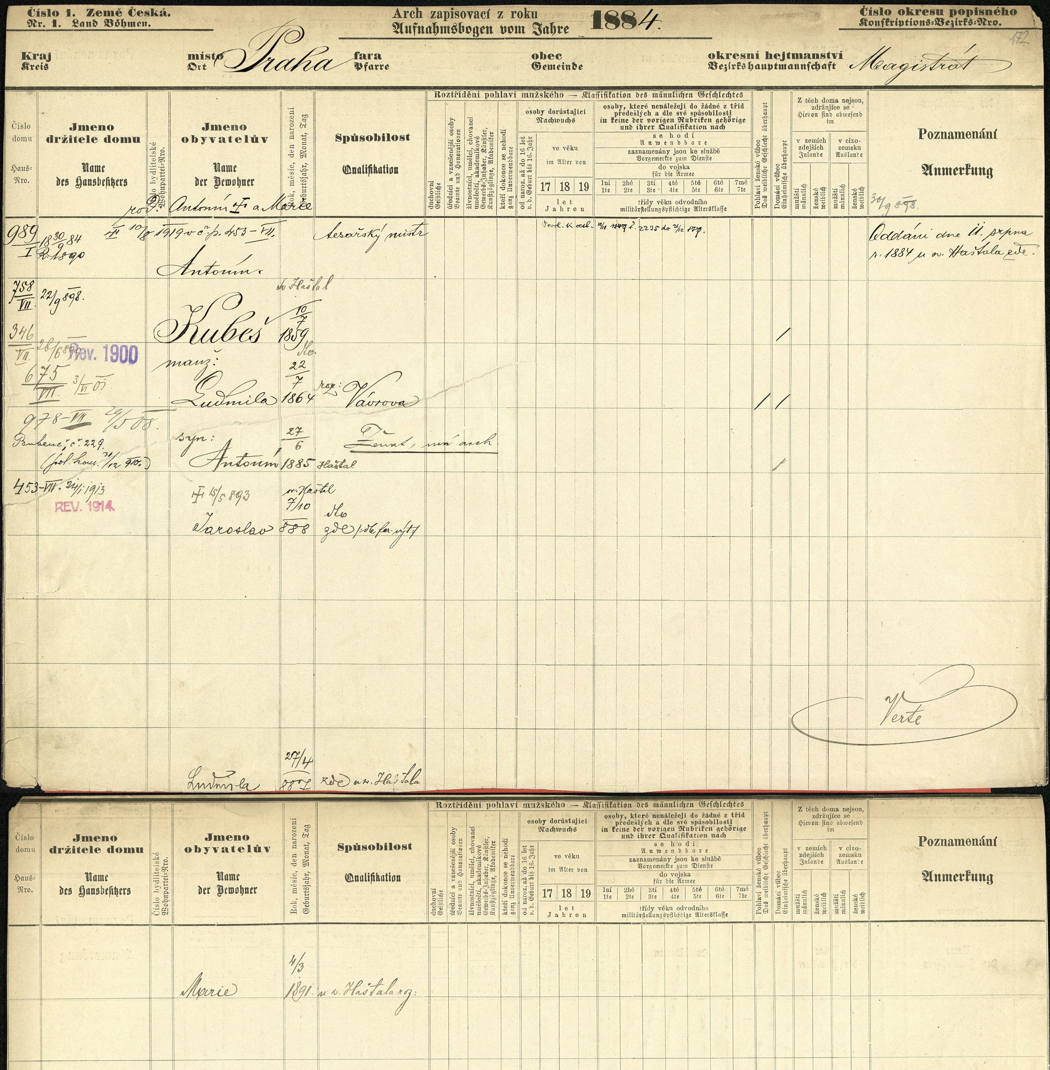 Antonín Kubeš †10/8 1919 v č.p. 453-VII |