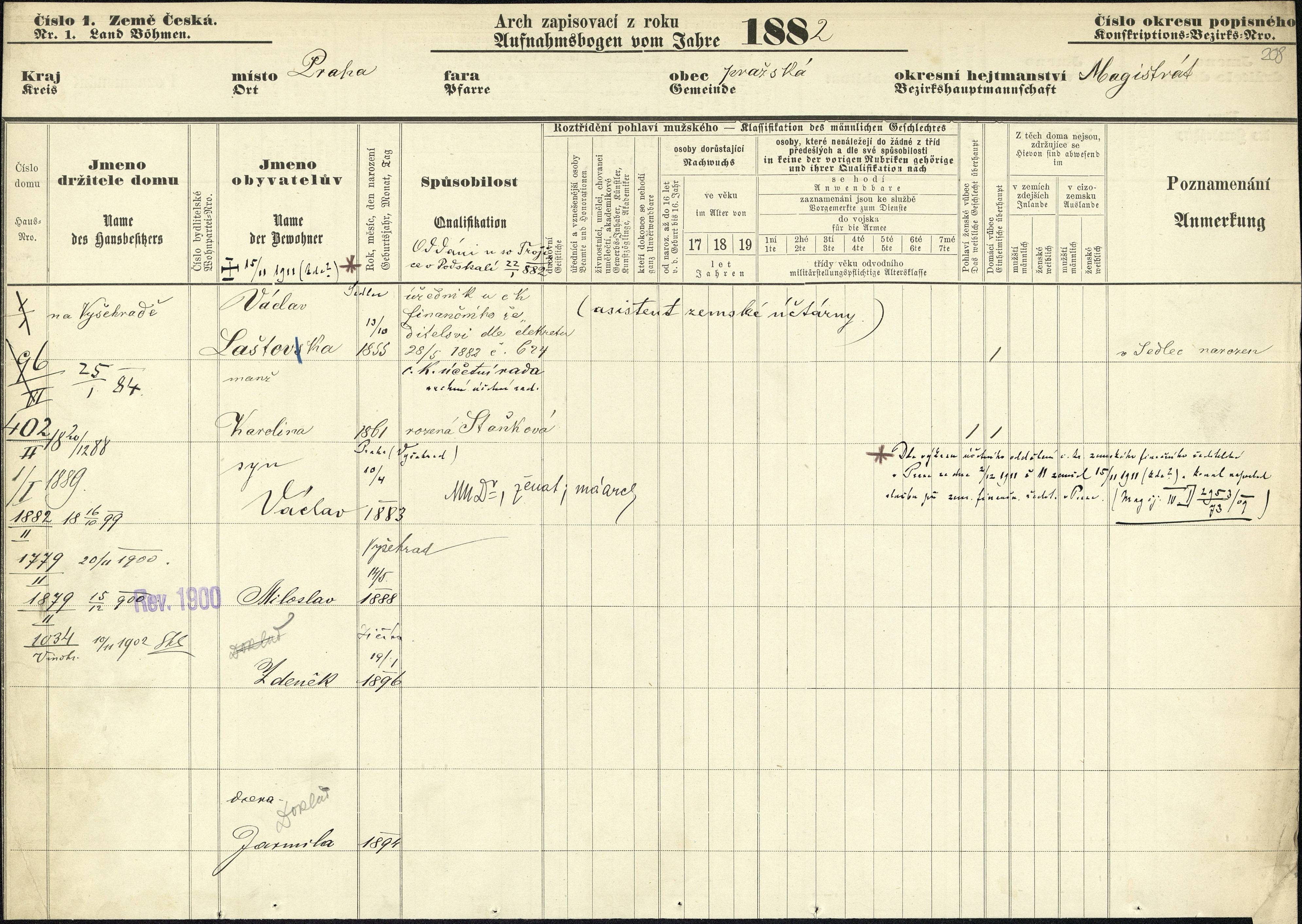 †15/11 1911 (kde?)(*) Sedlec Václav Laštovka |
