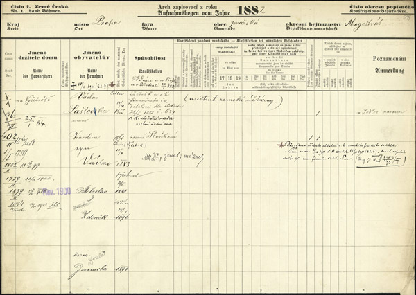 Arch zapisovací z roku 1885