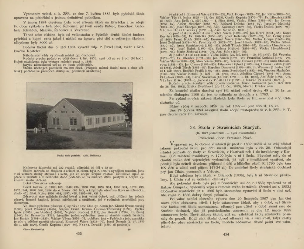 Povolání: Učitel v Holešovicích VazbyOTEC: Václav Hloušek, *1802 MATKA: Marie Anna Hloušková(Predlová), *1819 MANŽELKA: Antonie Hloušková(Šoulejova), *1863 SYN: Antonin Hloušek, *1883 DCERA: Anna Hloušková, *1885 DCERA: Milada Hloušková, *1887 DCERA: Zdenka Zychová(Hloušková), *1889 PoznamkySvatba byla možná až 26.8 1881 nebo i 1880 v BádáníObecní schematismus král. hlavního města Prahy na rok 1897 Str60: Hloušek Frant,učitel v Holešovicích, č. 614-VII Je uveden jako člen měsíčních konferencí v kategorii prvních učitelů Str 176: Obecná škola pro chlapce v Holešovicích spojená s měšťankou v čp. 333-VII Str. 190: V Kapitole "Učitelstvo obecných a měšťanských škol setříděné dle nynější hodnosti a stáří služebního vůbec" je v kategorii "Učitelé obecných škol" na 39 místě z 59. --- Politický a školní okres Vinohradský a paměti i rozvoj národních jeho škol Str 434: Podučitelem (1873-1878) a učitelem (1878-1883) ve škole v Pyšelích byl František Hloušek --- Politický a školní okres Vinohradský a paměti i rozvoj národních jeho škol Stránka monografie Str 626: Přednáška Frant. Hlouška "O hutnictví" 27.12.1880 v Jílovém na spolkové schůzi "Komenského" --- Šematismus pro království České (1892) Str 134: Měšťanská škola pro chlapce v Holešovicích (3tř.)(333-VII), U. ob. šk.(Učitel obecné školy) Hloušek Frant, 123-VII --- Lidové noviny, 19.1.1910, str. 10 ... načež žáci obou třid střídaví zapěli několik koled a přednesli několik příležitostných básní. Katecheta P. Josei Kolenec promluvil o významu slavnosti. Jménem místní Školní rady pak předsedající p. Hloušek Frant. poděkoval všem dobrodincům a příznivcům naší školní mládeže.... (může jít o jiného FH) --- Národní listy, 19.6.1889, poslední str.: učitel chapecké školy v Holešovicích dar 30 kr na jakousi povodeň či co --- Národní listy, 30.8.1885, str. 2: Spůsobilost ku vyučování na pokračovacích průmyslových školách pro obor průmyslu technického nabyli: ... Hloušek Frant. z Prahy... (může jít o jiného FH) --- Beseda Učitelská, 3.5.1894: (text nedostupný) Bohnicích u Nymburka, pí. K. Skopcová v Sadské, p. Fr. Hloušek, učitel v Holešovicích; p. A. Gottfried, říd. uč. od sboru uč. v Komárově 1 zl. 86 kr., slč. Kottová v Praze, slč. Johlová v Praze, p. Bedřich Halaburt, říd. uč. v Peruci, si. Budeč holická za prodané tiskopisy 60 kr., úroky 580*88 --- Národní politika, 21.4.1893, str 2: Členem Wenzigova nadání s příspěvkem 2 zl 50 kr. ročnšse stal Fr. Hloušek z Prahy (může jít o jiného FH) --- Národní listy, 20.12.1882, str. 3: Ustranoveni byly .... za učitele ve školách obecných: ... Fr. Hloušek v Holečovicích... --- Beseda Učitelská,26.7.1888, str 417: Prostředníkem mezi Bolzanovým odborem pro řízení českého siročince učitelského a učiteli (výběr peněz a nábor) je v Holešovické škole Frant Hloušek. --- Lidové noviny, 23.1.1903, str.7: ... za přehlížitele účtů zvoleni byli pp. Frant. Hloušek a Frant. Ševčík. Valná hromada ukončena byla provoláním zdaru ... (plný text nepřístupný) --- Národní listy, 18.7.1889, str. 2: Učitelské a školské zprávy. Dne 15. čerence t. r. ukončen byl na c. k. státní průmyslové škole v Praze kurs pro spracování dřeva (truhlářský) ... ... Kursu toho s účastnili ... Fr. Hloušek, ... Výstava prací jmenovaných pánů poskytovala překvapující dojem hojností pěkně provedených vazeb dřev a předmětů ze života praktického, při nichž spojování dřev vhodně bylo užito. Vše znázorněno též vyloženými výkresy. .... Po ukončeni výstavy rozdal vládni rada a ředitel stální průmysl. školy pan Jan Tille, jednollivým účaslnikům kursu vysvédčeni vesměs stejná, svědčící o velmi pilné návšlěvé a spůsobilosli vyučovali pracím ve dřevě na obecných a mesiánských školách. Na to přál pan ředitel vřelými slovy všem účastníkům tohoto kursu nnoho zdaru. Ku konci děkoval p. Frant. Hloušek, učitel z Holešovic, jménem svých kollegů, zejména p. ředileli J. Tillovi za otcovskou lásku, kterou prokazoval všem účastníkům kursu po celou dobu jeho trváni (od 7. března do 15. července)... --- Historie: Narodil se v P1, tam bydlel i po promoci(?). Nejdříve učil na Starém Městě. V létech 1873-1883 učil v Pyšelích, kde se poznal s Antonií Šolejovou (Scholejovou), dcerou ...