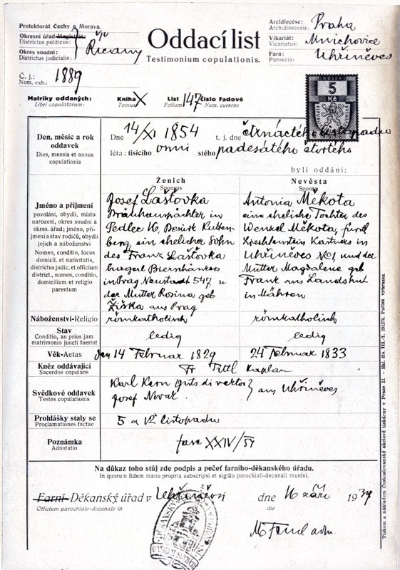 - 14.11.1854 -- Svatba na faře v Uhřiněvsi