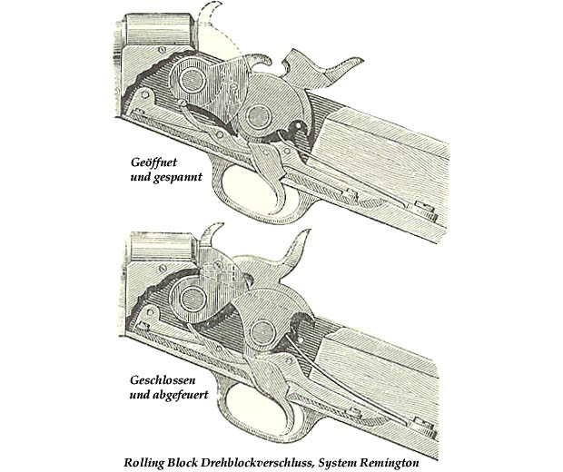 Eliphalet Remington (28.10.1793 – 12.8.1861) zakložil v roce 1816 firmu E. Remington & Sons poté, co zkonstruoval svoji první hlaveň. Nejdříve se firma zabývala právě výrobou kvalitních hlavní. Později, zhruba od poloviny 19. století, dodávala firma celé zbraně. Později se výroba rozšířila o další strojírenské výrobra. Slavný byl například jejich psací stroj. Firma E. Remington and Sons (později Remington Arms Company) se stala významným vládním dodavatelem ručních palných zbraní v americké revoluci i v obou světových válkách. Je to jedna z nejstarších amerických firem. Jako snad jediná vyrábí jak zbraně, tak i munici. Rolling Block firmy Remington je jednoduchý a spolehlivý závěr odklopný dozadu, který se otáčel stejným směrem jako kohout při svém natažení. Původní patent Leonarda Geigera z roku 1863 rozpracoval jeden z vedoucích konstruktérů Josepf Rider do prakticky použitelné podoby koncem roku 1864 a tak začátkem roku 1865 opustily výrobní závod první pušky s názvem Split Breech Remington Carbine. Závěr Rolling Block se osvědčil. Zatímco zakázky pro americkou armádu nebyly velké, tak vývoz do několika desítek zemí dosáhl asi půl milionu kusů. I když opakovací pušky vytlačily jednoranný Rolling Block, tak v některých zemích se udržely až do první světové války. Puška Remington Rolling Block byla natolik úspěšná, že se licenčně vyráběla v několika zemích. V Evropě je vyráběly např. ve Španělsku nebo Belgii a zejména v severských zemích v Dánsku a ve Švédsku. Ve Švédsku byly čtyři výrobci, kteří značily své výrobky na zámku eventuálně i hlavni těmito značkami:
