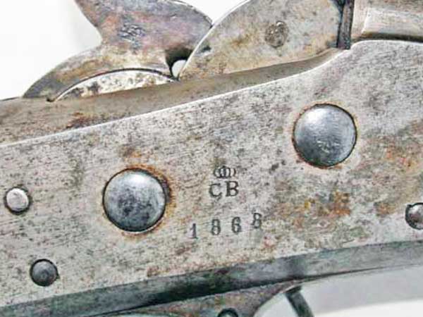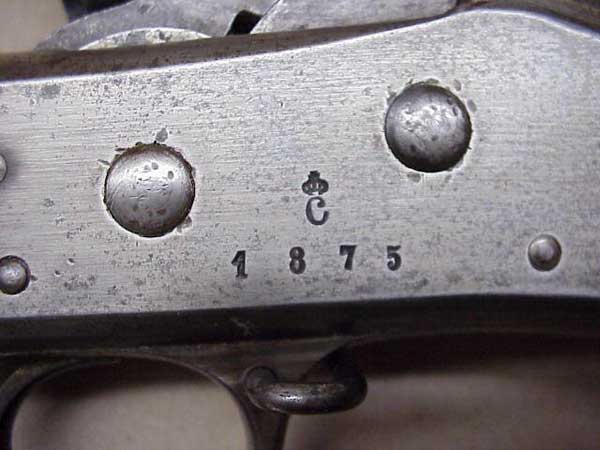Zřejmě verze pro Švédskou armádu. Usuzuji podle značky výrobce Carlsborgs Tygstation na pravé straně zámku. Z koruky umístěné nad CB usuzuji, že jde o vojenskou zbraň. Na druhé straně jsem kdesi četl, že švédská armáda používala náboje s okrajovým zápalem.